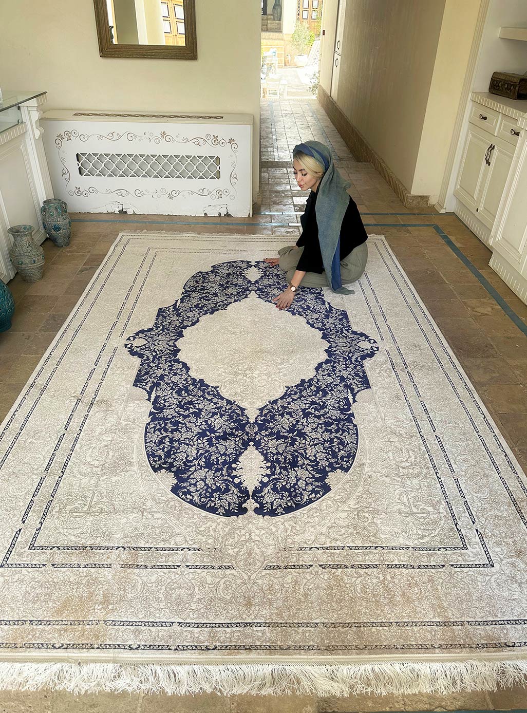 فرشینه طرح فرش افسون رنگ آبی کد 106005