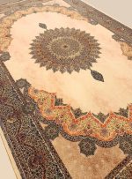 فرش کناره طرح هارمونی رنگ بادامی گل برجسته 700 شانه کد 20165